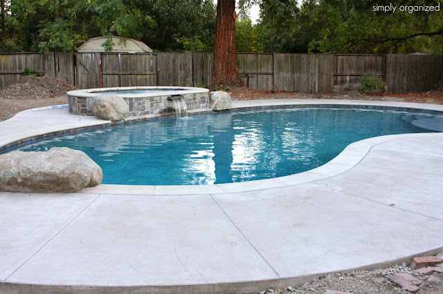 seriously though, last time we spoke about the pool / yard, the pool was completed and ready for swimming. however, the brick patio was in shambles and we were nowhere close to allowing the kids in the yard because of the fully exposed pool. the boys are great swimmers, but my 3 year old isn't. even though the boys are swim safe, it gives me peace of mind knowing there is a fence with a lock and key (that i remove and keep inside the house when we aren't outside).